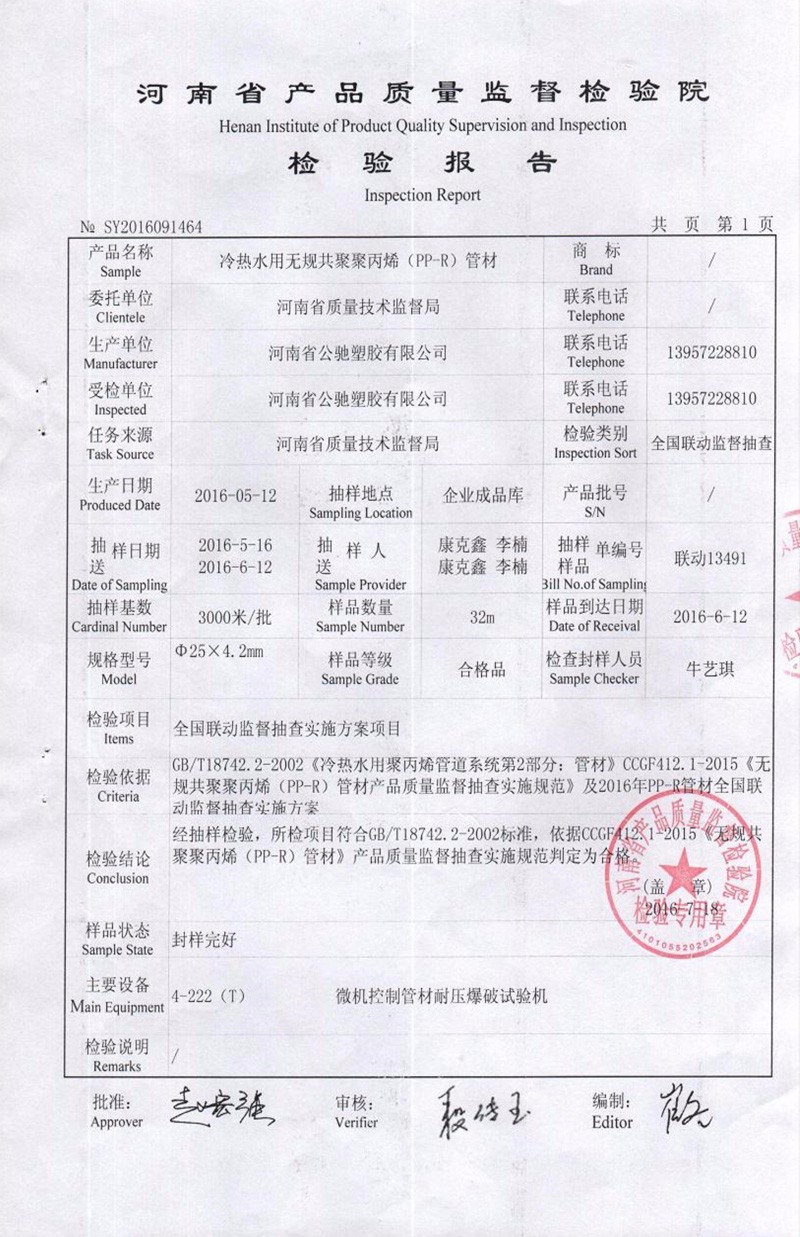 上一篇:PE給水管材質(zhì)量合格檢驗報告